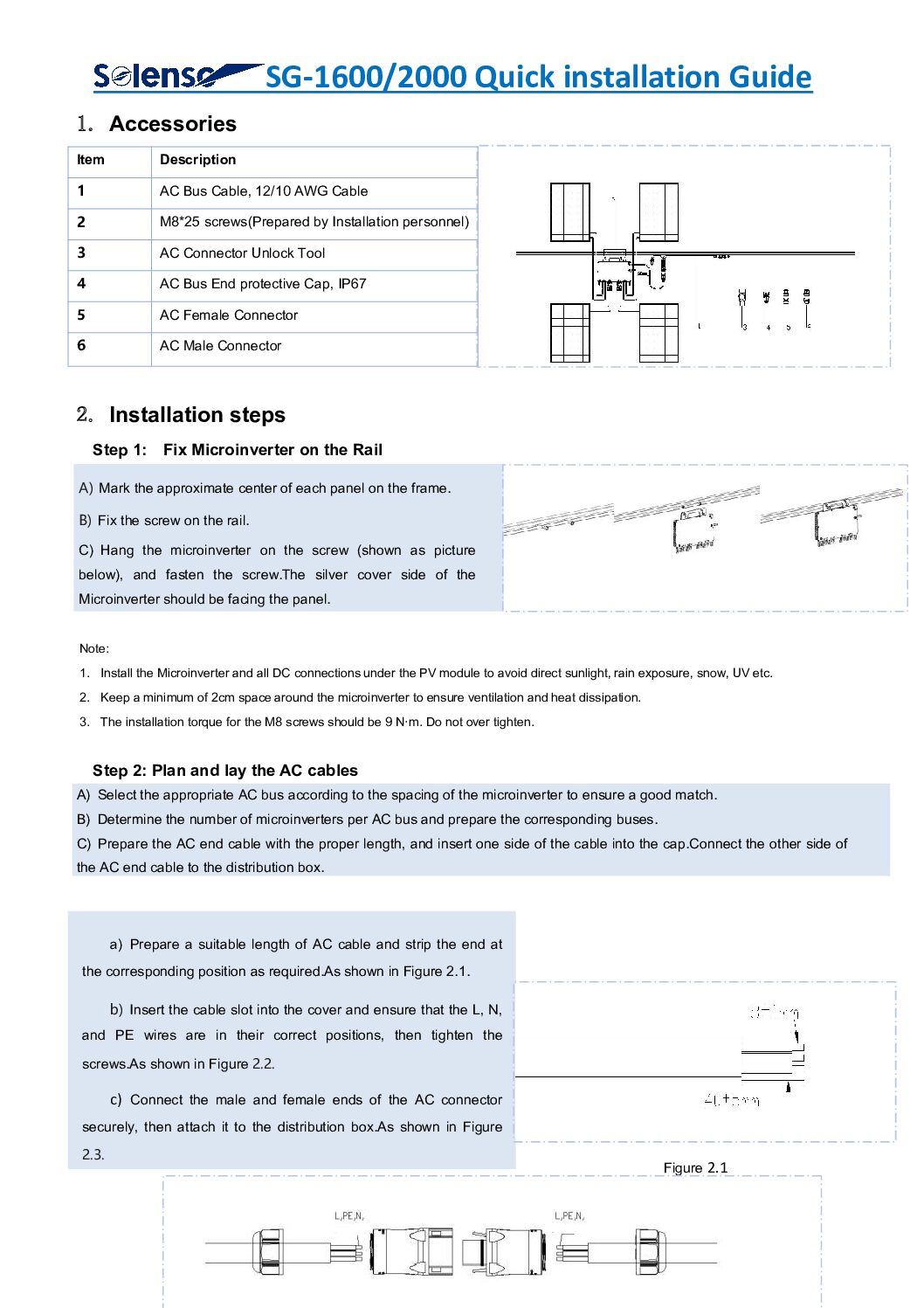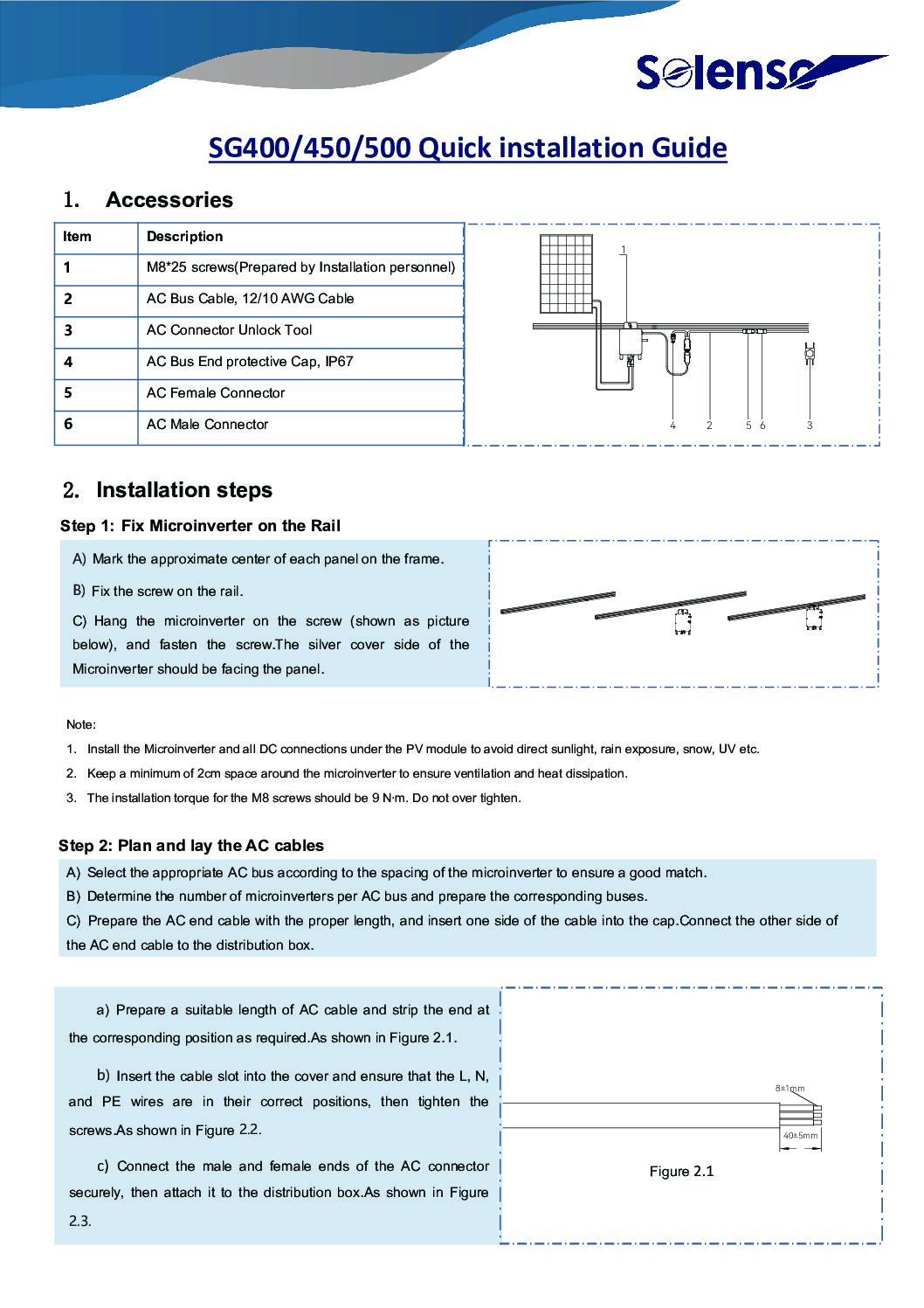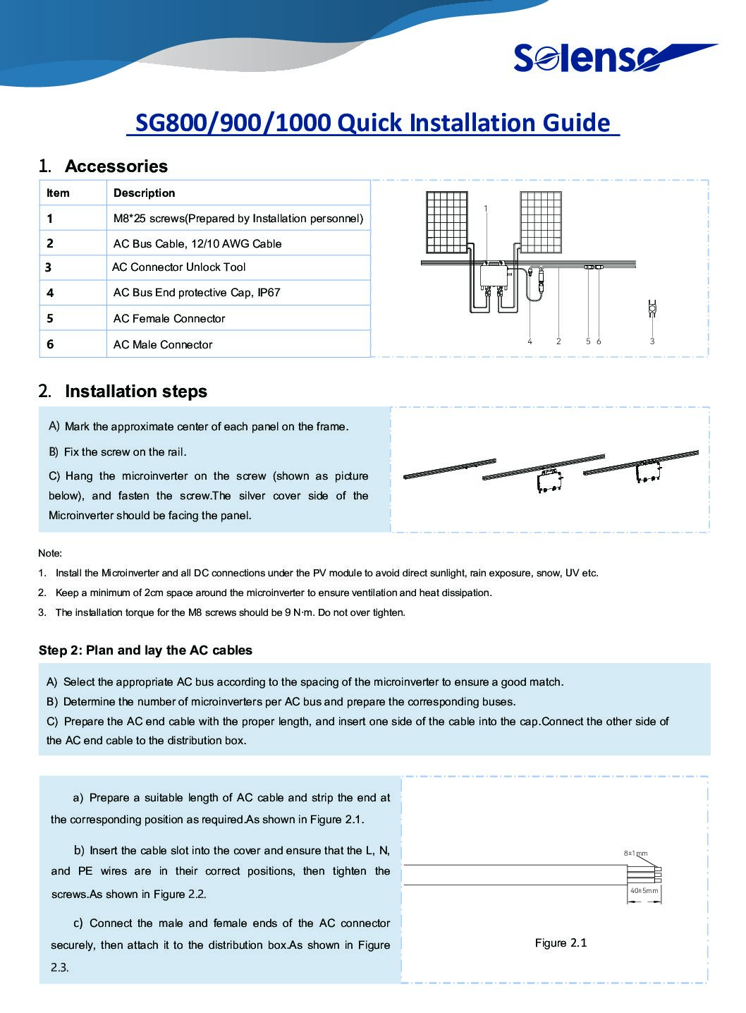 Quick start guide Home ressources Quick start guide Micro-inverter SG400 / SG450 / SG500 SG800 / SG900 / SG1000 SG1600 / SG2000
